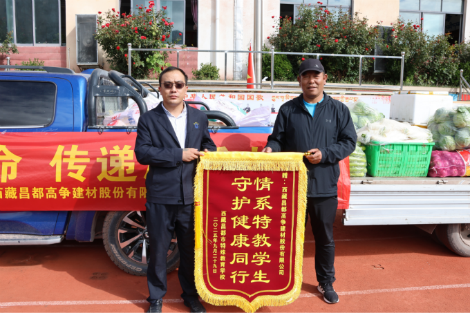 慰問儀式上,昌都高爭表示,企業(yè)將始終秉持“回饋社會、服務(wù)群眾”融入發(fā)展血脈,此次慰問既是對特教事業(yè)的實(shí)際支持,更是愛心與溫暖的傳遞,“服務(wù)雪域發(fā)展、造福高原群眾”的初心,此次慰問既是物資上的支持,更是精神上的鼓勵,希望這份溫暖能為孩子們的成長注入力量。學(xué)校負(fù)責(zé)人對愛心之舉深表感謝,稱這些貼合高原生活的物資承載著沉甸甸的關(guān)愛,將切實(shí)改善孩子們的生活條件,把每份善意轉(zhuǎn)化為教育動力,并送來一面錦旗,表示感謝。